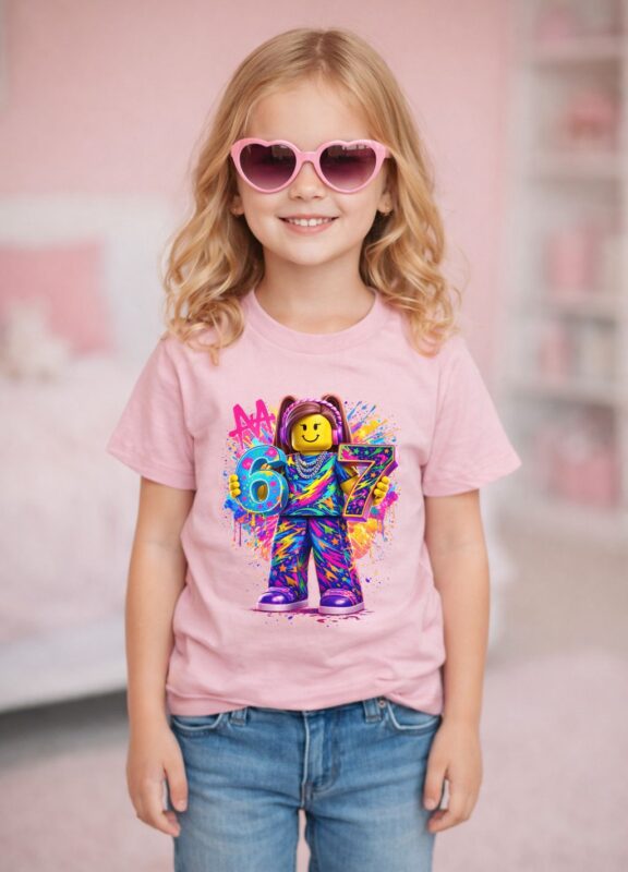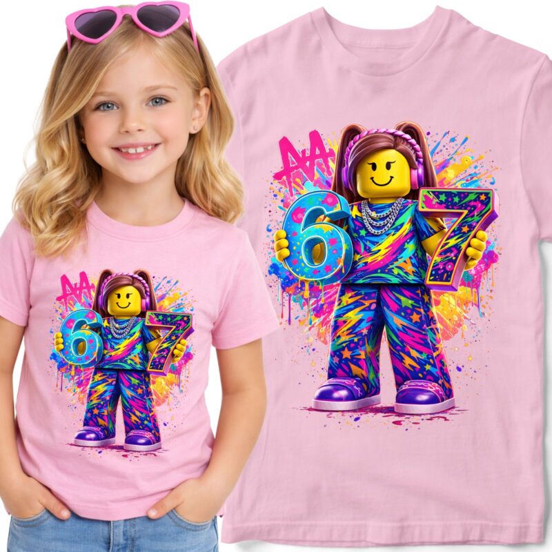Koszulka Dziecięca Różowa 6 7 Six Seven Klocki Grafiti